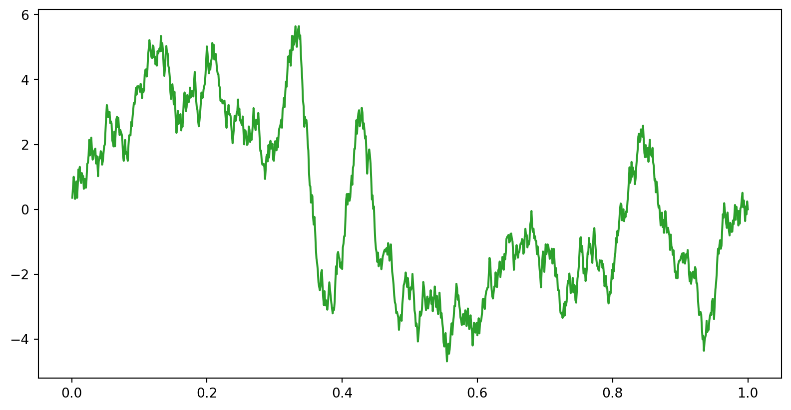 brownsig = np.cumsum(temp) # Brownian noise is the cumulative sum of white noise