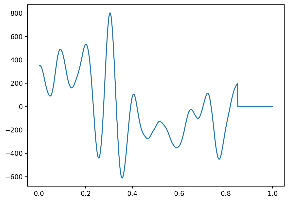 addsig[300:450] = Sin10Hz[300:450] # add the 10 Hz sine wave to the signal vector